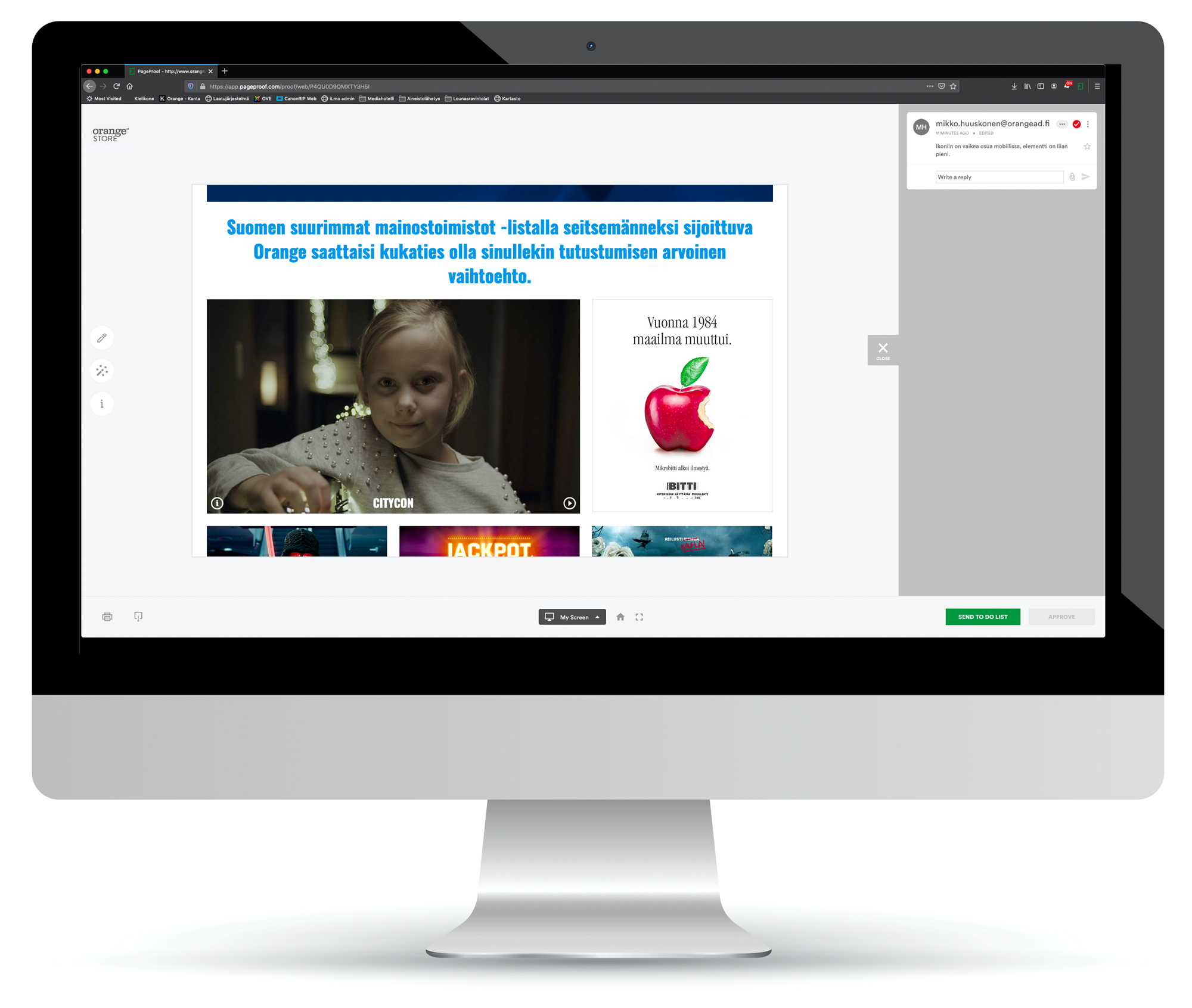 Orange Store is a web service for our customers for managing all the marketing related projects at Orange. It features new and upgraded online briefing and material proofing tools that make working with us even more seamless than before. Briefing new projects, reviewing all materials in any format and approve or request changes by pinpointing your comments with just a few clicks. The online reviewing tool supports a variety of media formats such as audio, video, PDF, image, webpage and other HTML content etc.